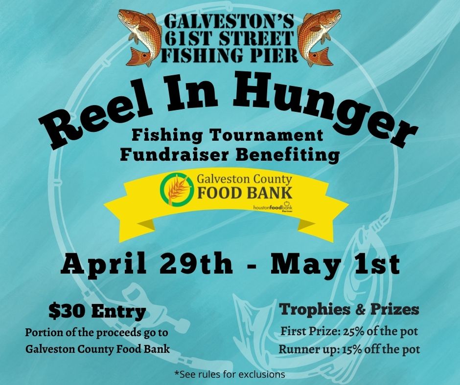 Galveston’s 61st Street Fishing Pier is hosting Reel In Hunger fishing tournament on behalf of the Galveston County Food Bank.